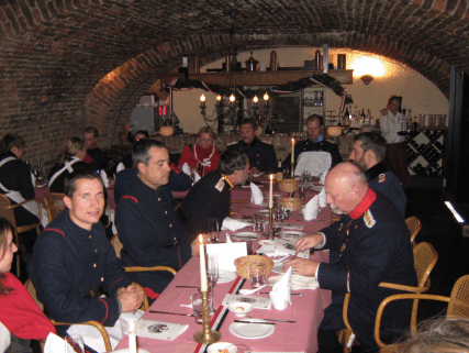 Stilecht und angemessen dekoriert begann der Casino-Abend im historischen Gewölbe mit einer Ansprache des Vorsitzenden und der Auszeichnung des Oberleutnants i.TR. Heinen vom Eisenbahn-Regiment Nr. 1 mit dem Verdienstkreuz des Offizier-Vereins in Bronze für seine Verdienste um den Verein. Zu Gast war eine Abteilung der Königlich Belgischen Armee und einige Neumitglieder nahmen zum ersten Mal an einer Veranstaltung teil, anschließend gab es musikalische Darbietungen von 'Otto Reutter' mit Couplets aus der Zeit vor dem I. Weltkrieg.