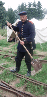 Eine außerordentliche  Leistung war der Bau des Lugaer Viaduktes, welches eine Länge von 280 m und  eine Höhe von bis zu 22 m hatte. Zudem gab es noch einige weitere Brücken sowie  eine Seilstrecke bei Zscheilitz. Am 31 August war die Strecke mit erreichen des  Endpunktes Seeligstadt fertig gestellt. In der Zeit vom 1. bis zum  8. September wurde die Strecke genutzt und danach in Seeligstadt beginnend wieder  zurück gebaut. Selbstverständlich besuchte der Sächsische König mehrfach die  Heeresfeldbahnübung. Das Ereignis war seinerzeit auch eine „touristische“ Attraktion,  denn es fuhren Sonderschiffe von Dresden nach Seußlitz und auch die hiesige  Bevölkerung war unterwegs, um sich das Ganze anzuschauen.  |