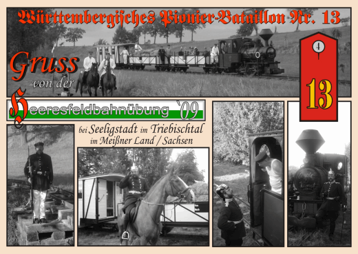 1909 fand im  Meißner Land eines der größten Manöver Sachsens statt – eine Feldbahnübung über eine  Strecke von 36,7 km. Am 31 Juli begann diese Übung an der Elbe bei Boritz und  Seußlitz unter Einsatz von Pontonbrücken zur Überquerung der Elbe. Innerhalb weniger  Woche wurde die Feldbahnstrecke von Pioniereinheiten aus Sachsen, Preußen und  anderen Bundesstaaten Deutschlands gebaut.