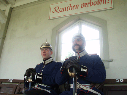 Unser Eisenbahn-Oberleutnant musste ab Samstag unter einer Augen- entzündung schwer leiden, ausgerechnet im Monokelauge!