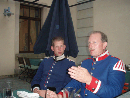 Am Abend dinierten wir dann noch standesgemäß im Offiziers-Casino in der Albertstadt-Kaserne, dem Standort der Offiziersschule des Heeres. Nach Besichtigung der Innenräume entschlossen wir uns aufgrund der äußerst angenehmen Temperaturen auf der Terrasse zu bleiben. |