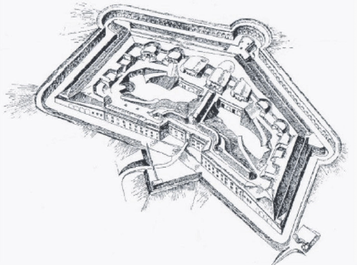Skizze von (vermutlich) Fort IV, einem sog. Biehlerschen Einheits-,Typen- oder Schemafort |