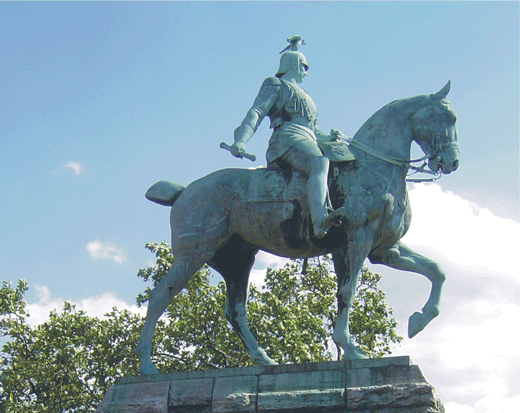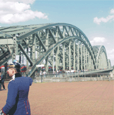 Als Ersatz für die entfallene Straßenbrücke wurden an die äußeren Eisen- bahnbrücken Geh- und Radwege angebaut. Die Hohenzollernbrücke stellt mit dem benachbarten Hauptbahnhof einen der wichtigsten Knotenpunkte im deutschen und europäischen Eisenbahnnetz dar und ist ein eindrucksvolles Bauwerk, welches als fester Bestandteil zum Stadtbild von Cöln und des Cölner Doms gehört. Die Zufahrten werden jeweils von zwei Reiterstand- bildern bewacht, in Gestalt von vier preußischen Königen und zugleich drei deutschen Kaisern: Friedrich Wilhelm IV., Wilhelm I., Friedrich III. und Wilhelm II.