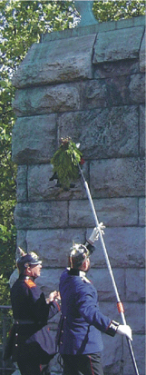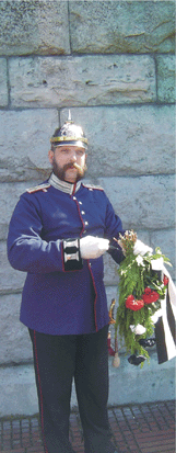 Die Abordnung unter dem Befehl des Herrn Oberstleutnant vom Königs- Infanterie-Regiment Nr. 145 aus der Garnison Metz und unter Mitwirkung des Oberleutnants des Eisenbahn-Regiments Nr. 1 ging es quer über die Domplatte zum Denkmal Seiner Majestät.