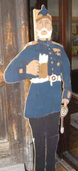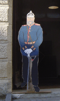 Ausgerechnet der St.Georgs-Pfadfinderstamm Saint-Exupéry hatte uns auf Pappe gemalt. Dazu muss man wissen dass diese Pfadfinder tragendes Mitglied des Ulmer Stadtjugendrings sind, der Dachverband also, der uns im September 2008 aus dem Fort Unterer Eselsberg hinaus intrigiert hatte, auch weil wir an den beiden vorangegangenen Tagen des offenen Denkmals Führungen in Uniform gemacht hatten. |