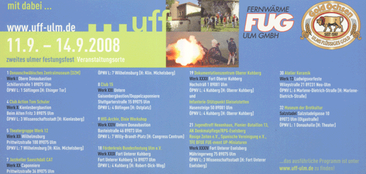 Ohne Unterstützung seitens der Stadt wurde das 1. Ulmer Festungsfest den- noch ein Erfolg, daher beschlossen die Organisatoren ein 2. Ulmer Festungs- fest zu veranstalten. Wieder ohne Unterstützung durch das offizielle Ulm.